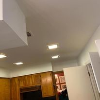 The pictures are some of my work we went from having popcorn ceiling to being flat white ceiling. Get your estimate for any job you need we can make it work.